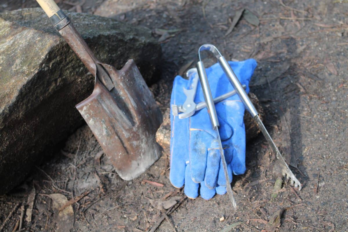 Always extinguish your fire with water – never soil – as the ashes can retain heat for days. A 10L jerry-full or bucket should do the trick. Keep it near the fire too, in case you need to extinguish it quickly.