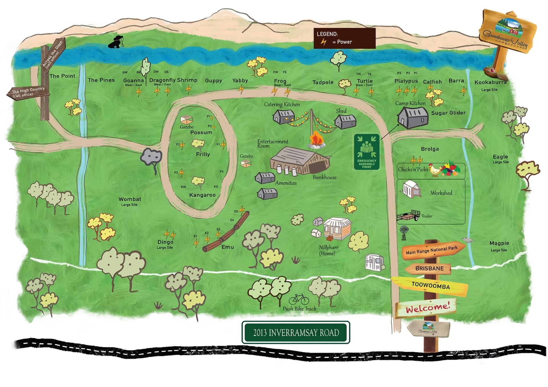 | Goomburra Valley Campground | goomburravalleycampground.com.au | The featured park, located on Dalrymple Creek. Offers powered/unpowered sites, a bunkhouse, and event catering. |