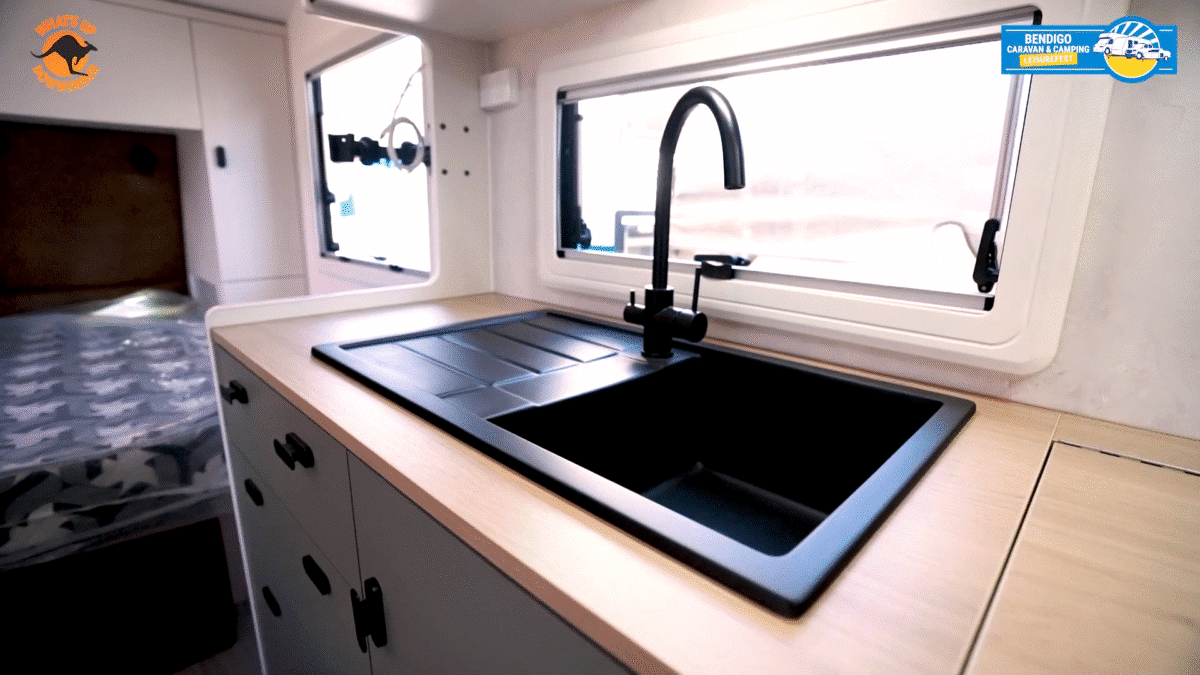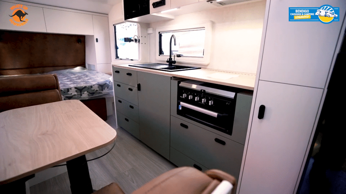 Equipped with twin 95-litre water tanks and a grey water tank, this Concept Innovation Oz Pack delivers ample off-the-grid, teamed smartly for 2026 with Cruisemaster ATX coils.