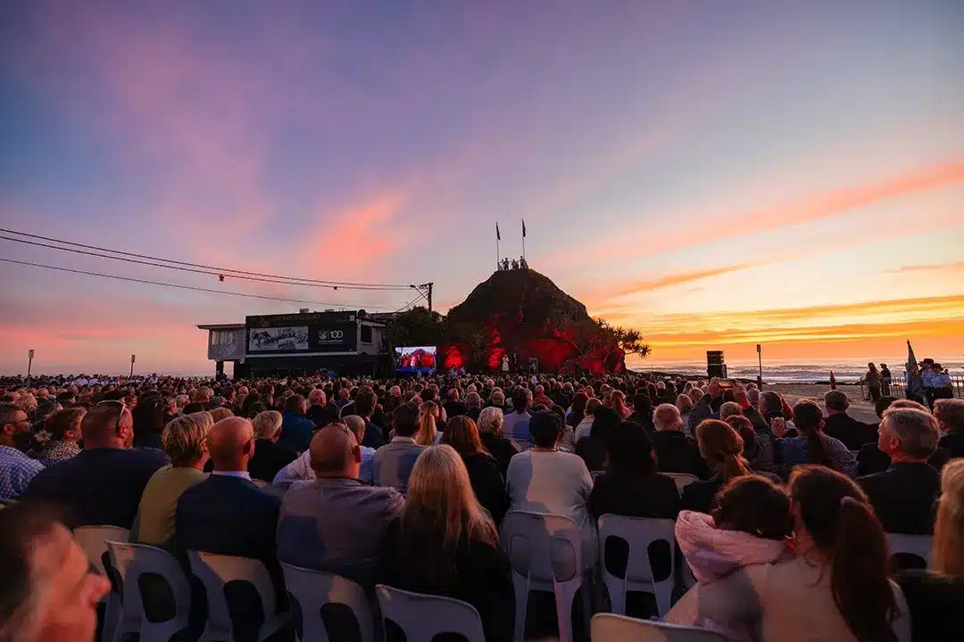 Currumbin Beach, Gold Coast – Billed by the Currumbin RSL as Australia’s largest regional dawn service, held at Elephant Rock right on the beach.