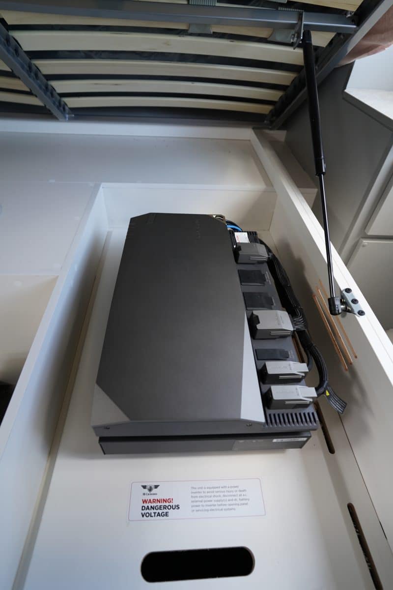 The Gator X is equipped with a powerful off-grid electrical system. The standard 2025 model includes the 5kW EcoFlow Battery Management System with a 416Ah lithium battery.