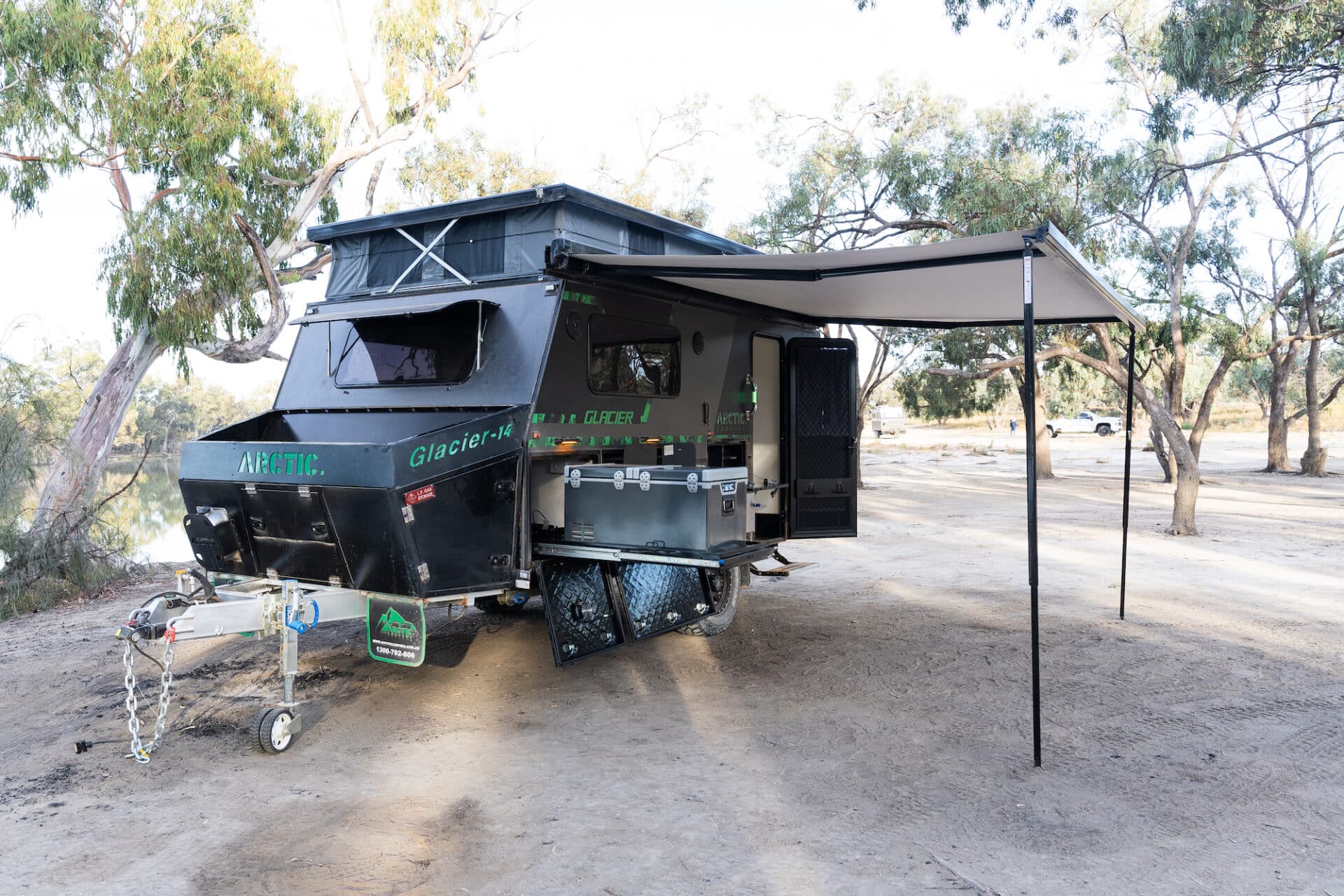 The Glacier 14 TS price is $59,990 and it includes an electric pop-top, a full-rear bathroom and a Projecta power management system.
