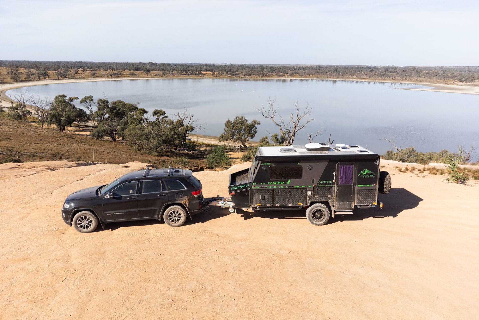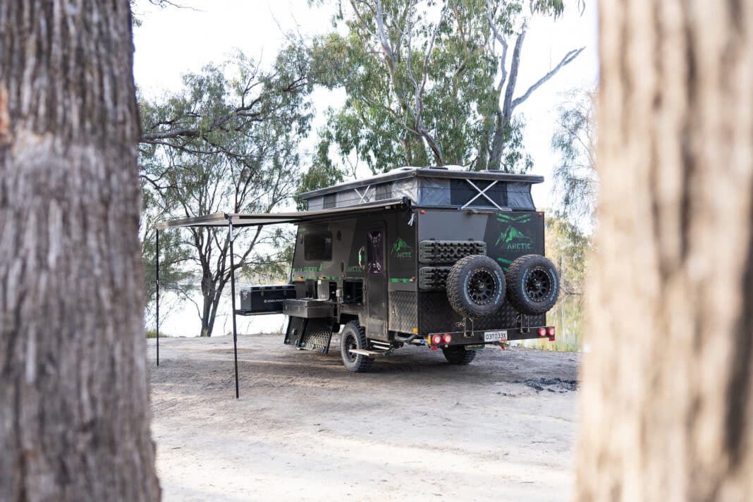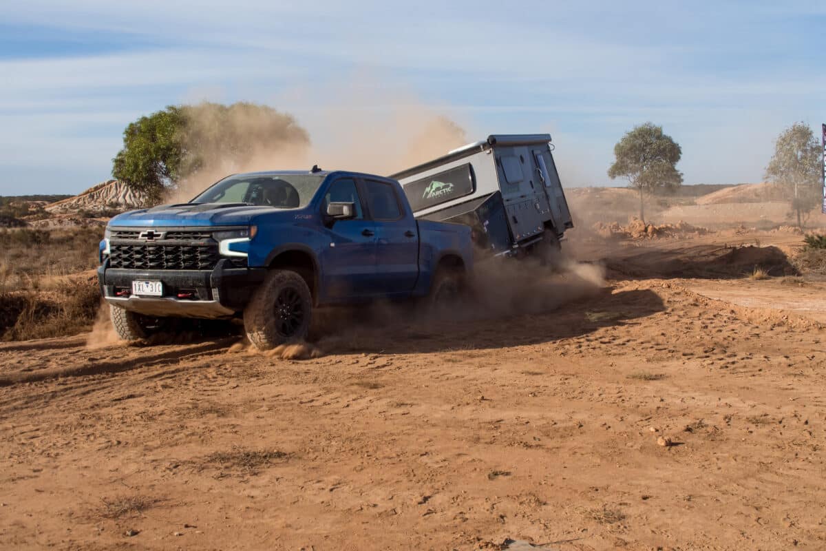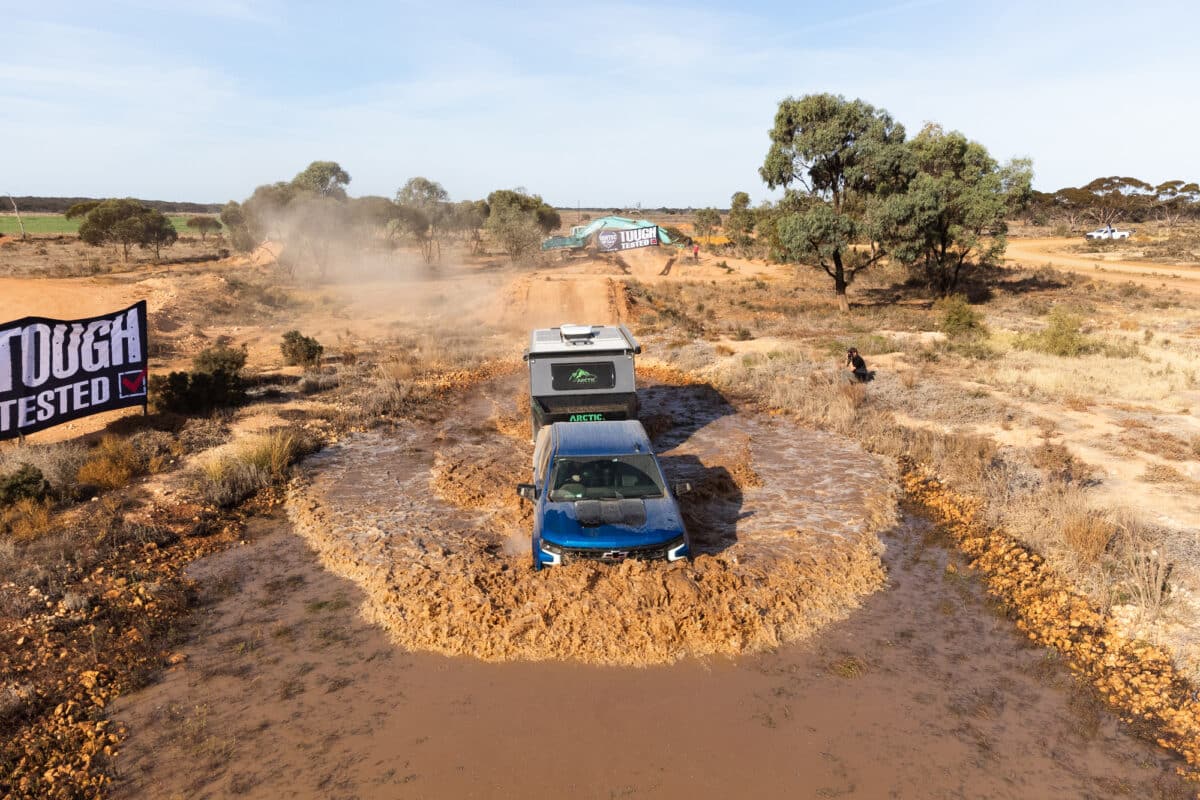 The Arctic Campers Glacier 14 on tow followed through the deep section smoothly. No visible damage was apparent on either the tow vehicle or the single-axle camper.