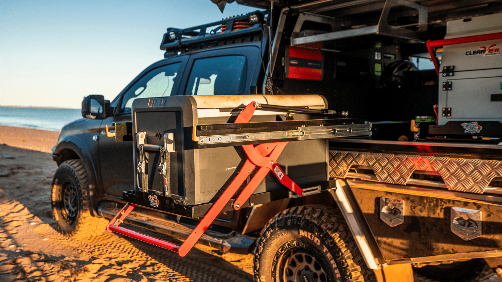 We all love clearance when straddling the tracks but it’s a lot less fun when you’re reaching for refreshments at day’s end. Which is why Clearview developed the elegant Easy Slide that lowers your chest-style cooler, ESKY or Clearview Pantry System by up to 290mm.