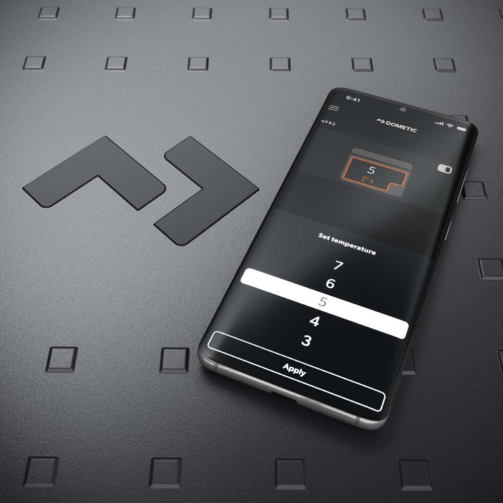 Bluetooth and Wi-Fi connectivity allow temperature monitoring and adjustment via the Dometic Mobile Cooling app.