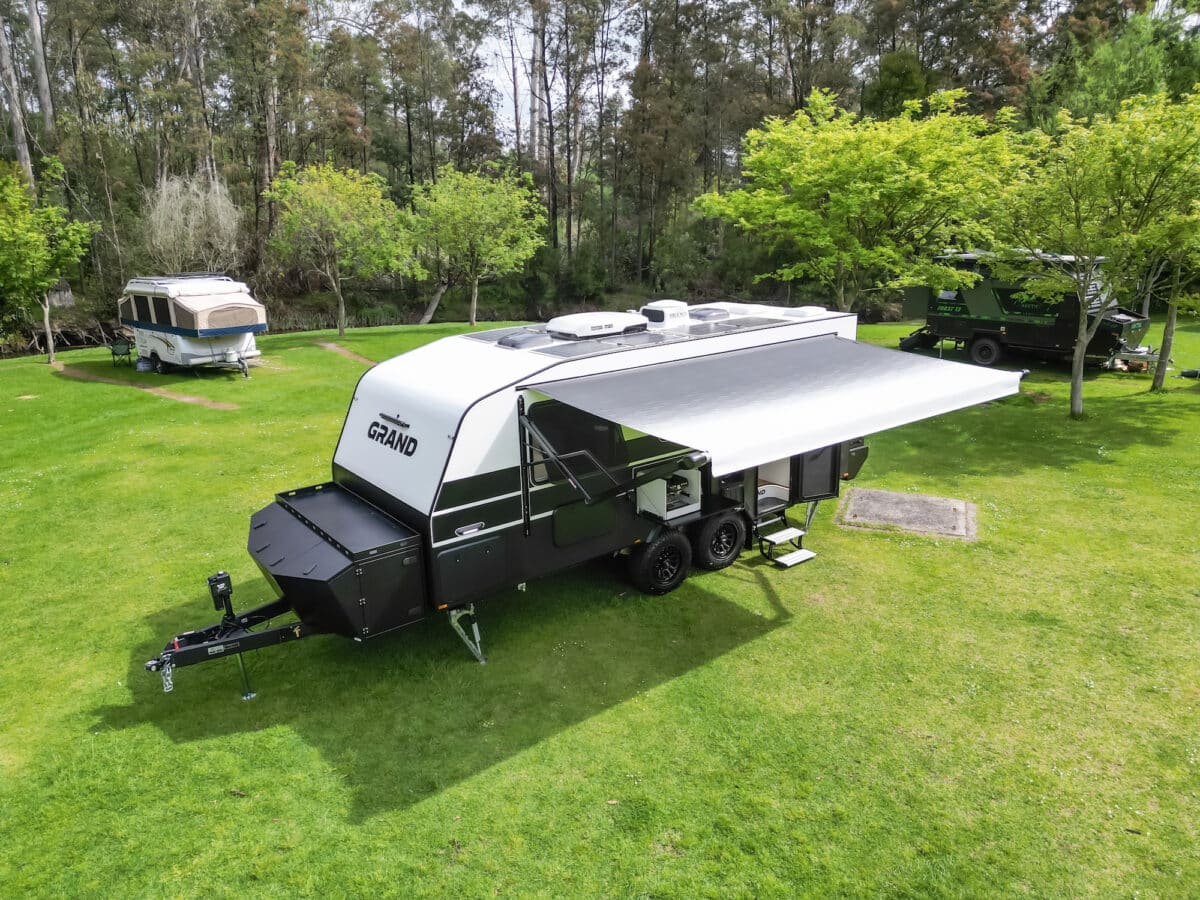 Equipped with automated features, this Grand Caravans Peak seen here teams a high level specification and lighter timber-free construction for easier towing.