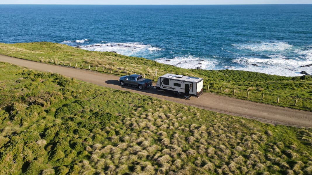 The Discovery’s hail-resistant Dune-coloured gelcoat looked smart against Phillip Island’s open roads atop of a 20mm honeycomb floor. If Dune doesn’t flick your switch, a grey exterior is also available, though it will come at an extra cost.