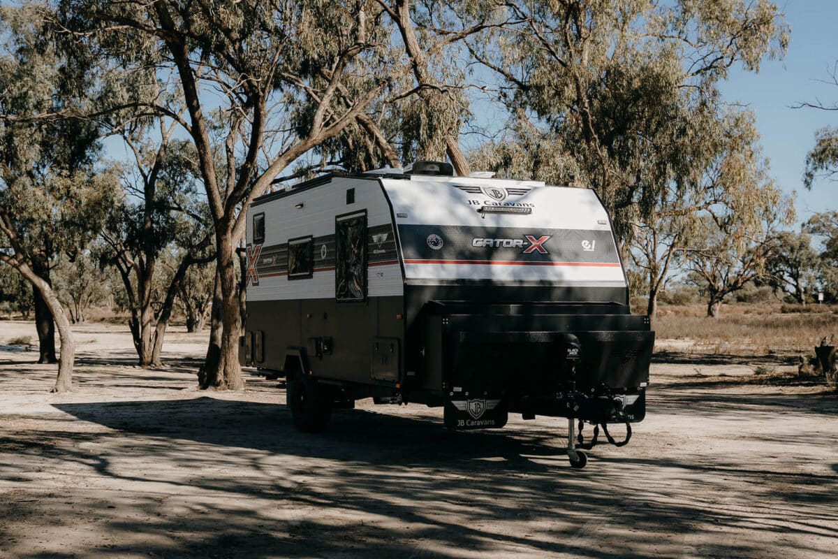 The JB Gator X ev tested here offers a spacious couples’ layout featuring premium electric appliances and a timber-free construction for durable touring.