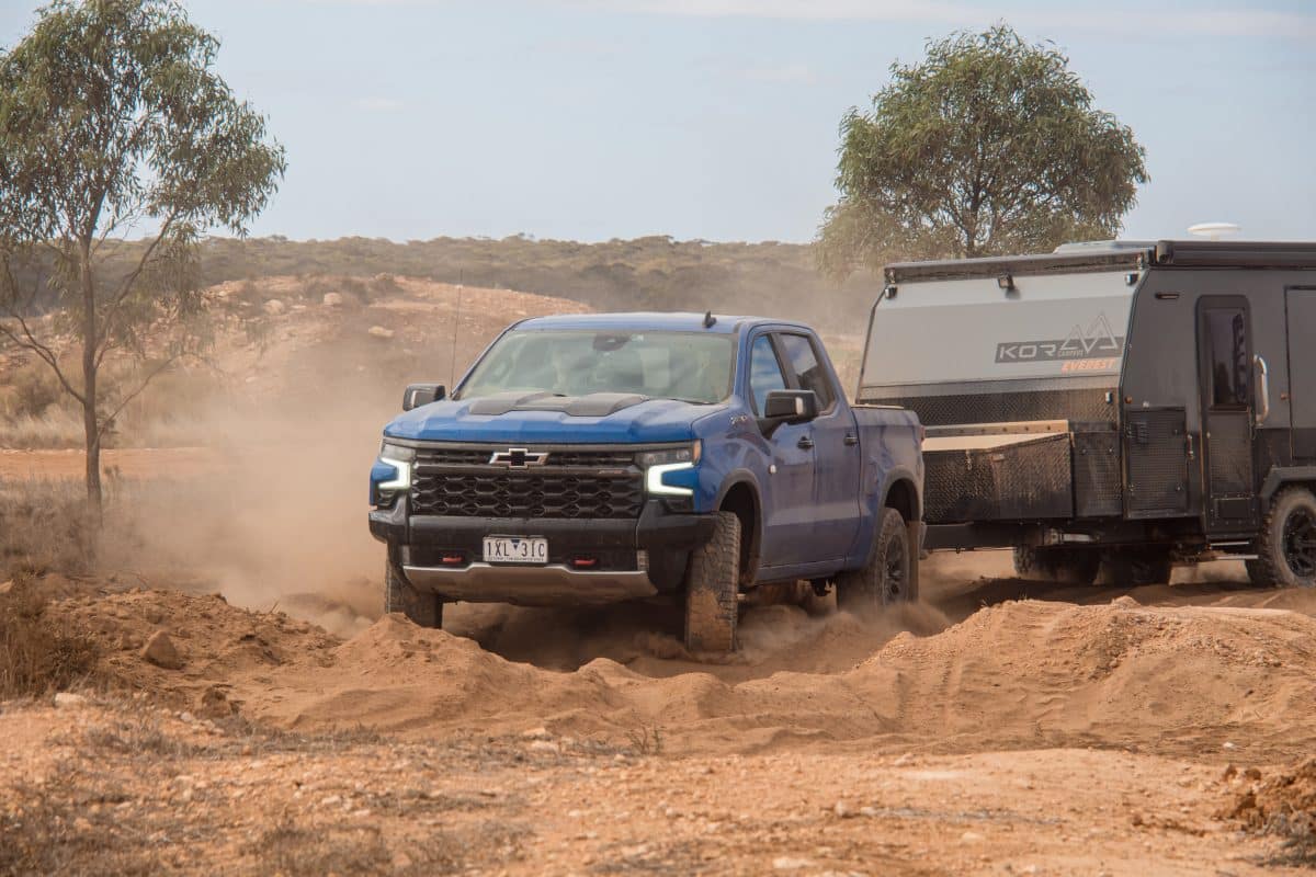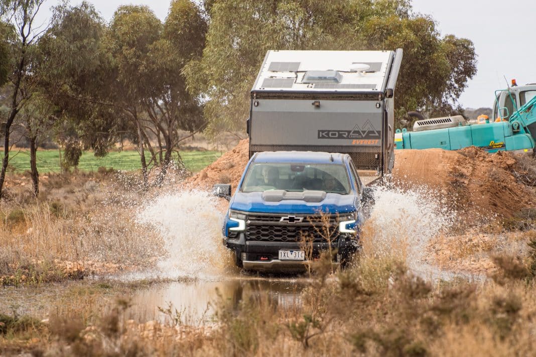 The Everest’s supple Cruisemaster XT Freestyle airbag suspension easily handles corrugations and tight corners with stability and ease. While twin axles shod here in Goodride mud terrains also helped deliver surefooted towing.