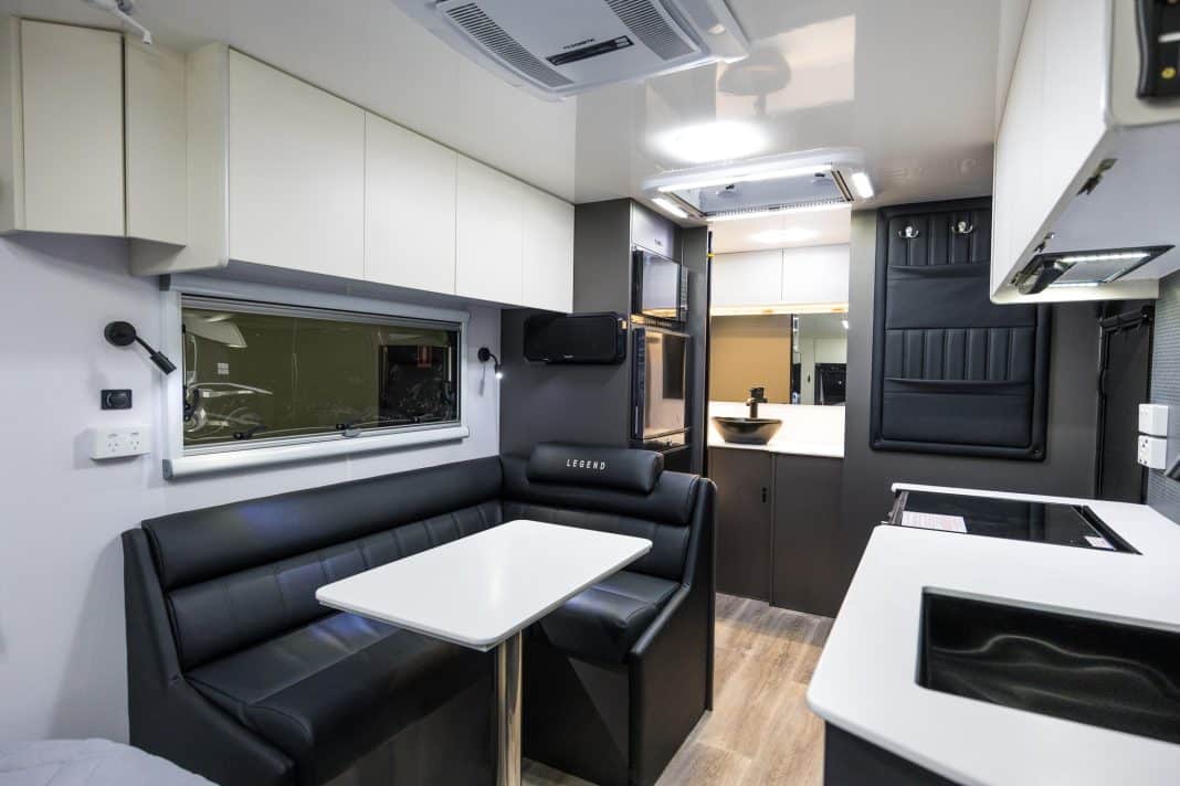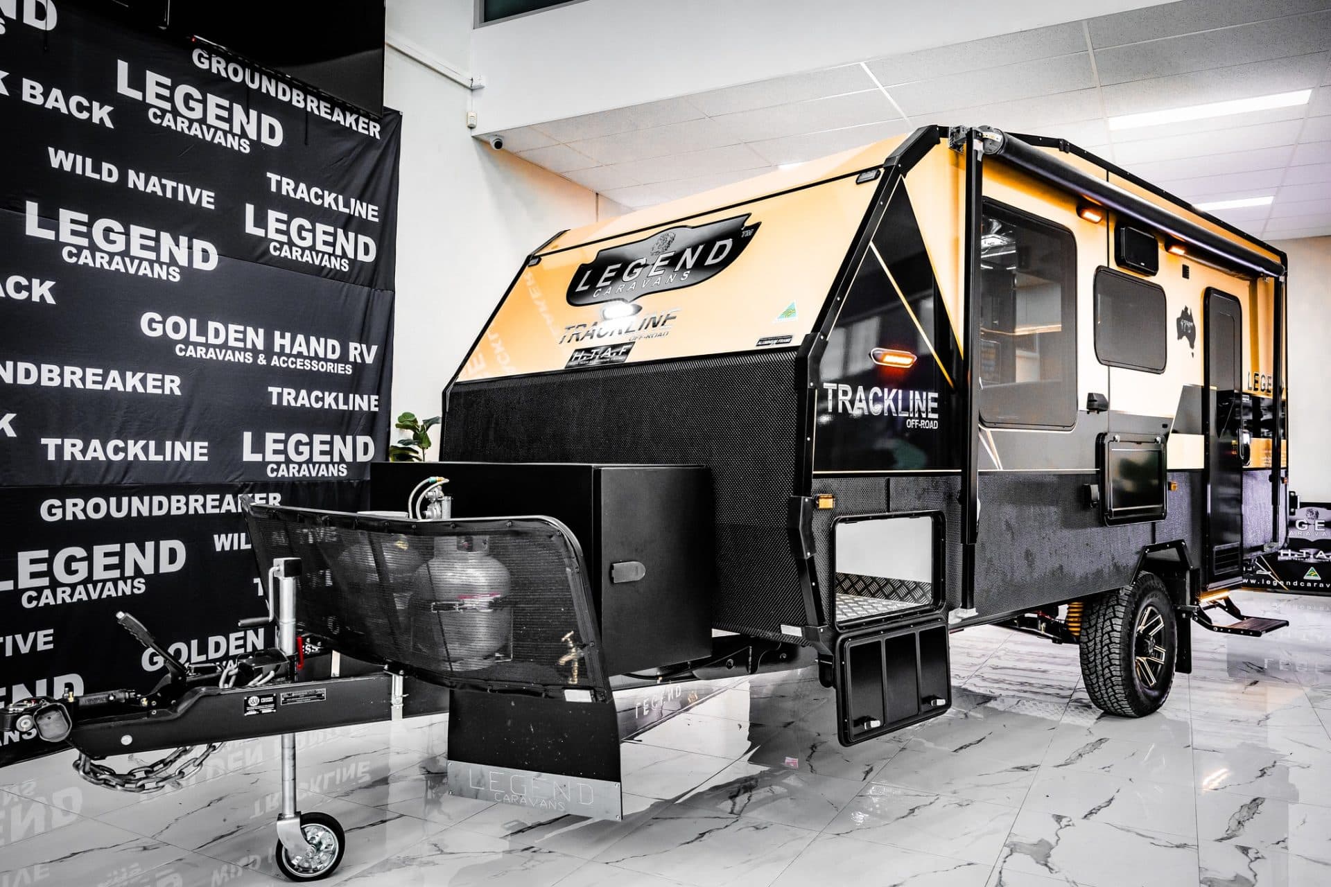 The Trackline 17ft 6in is now the largest in Legend’s hybrid series. It teases campsite chefs with a 150mm gain in benchtop space compared to similar size layouts in Legend’s range.