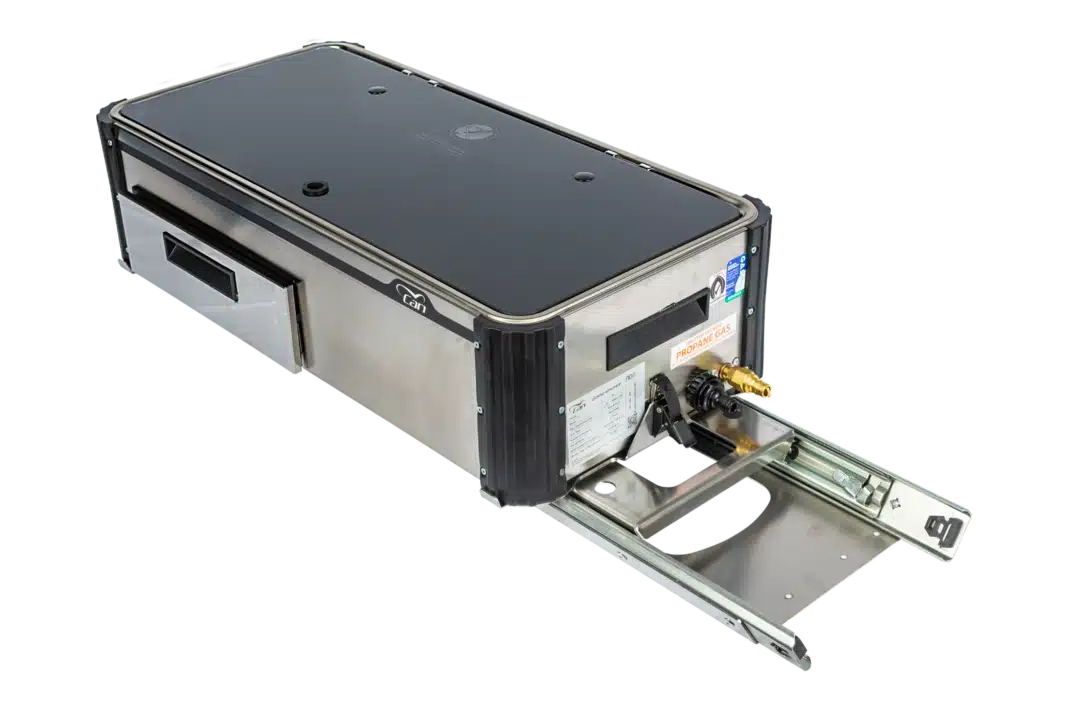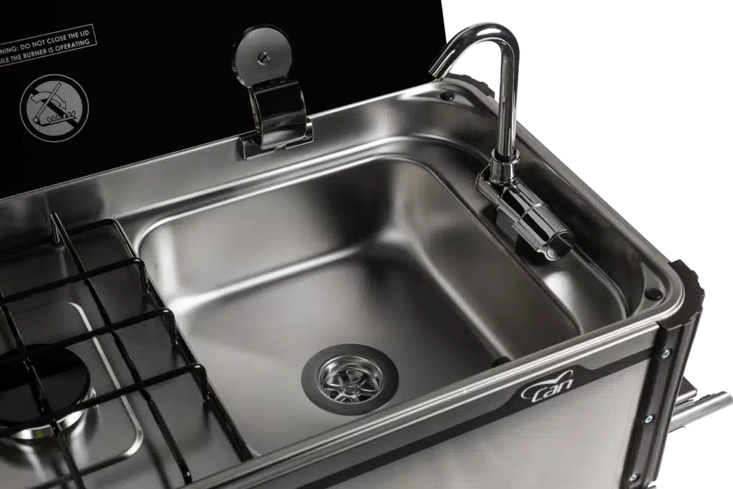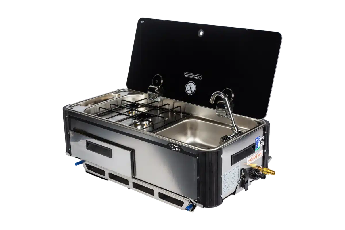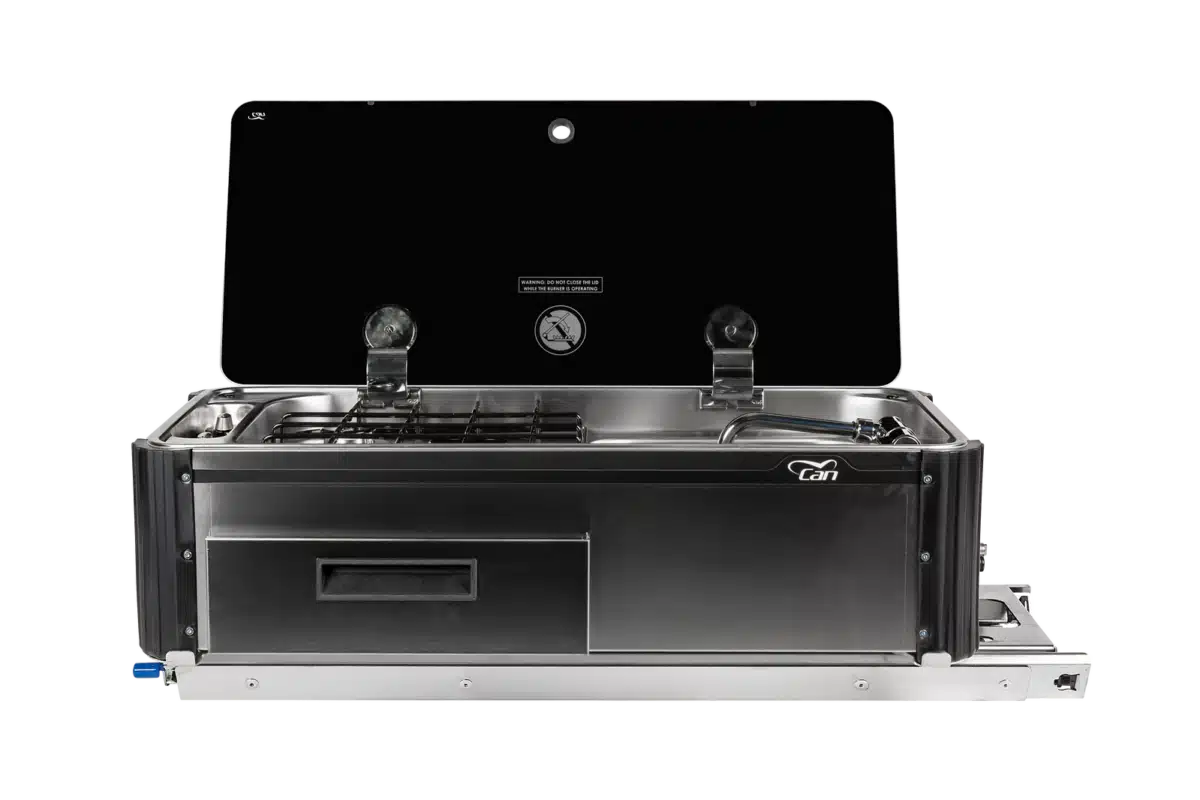 Available in three different orientations, the CAN Portable Slide Out Kitchen with Built-In Sink suits near-side or tailgate installations – on a width- or a length-style slide – or on height adjustable legs for excellent ergonomics and portability.